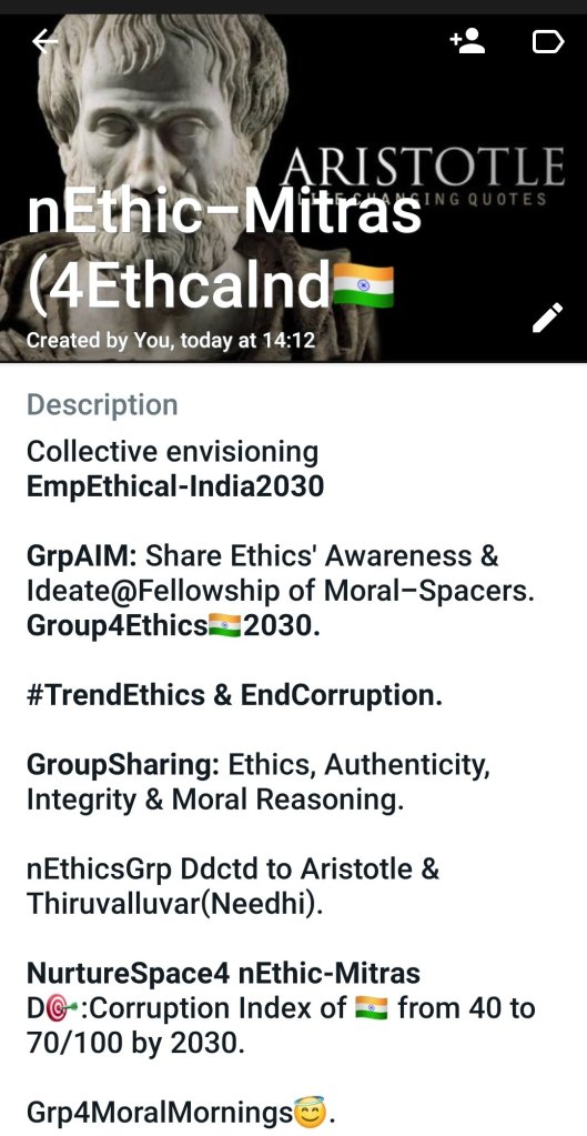 2. nEthic-Mitras: Invite to join Ethical-Thinkers group: https://chat.whatsapp.com/JBUMcGNzyug8Jfm3khKyK3