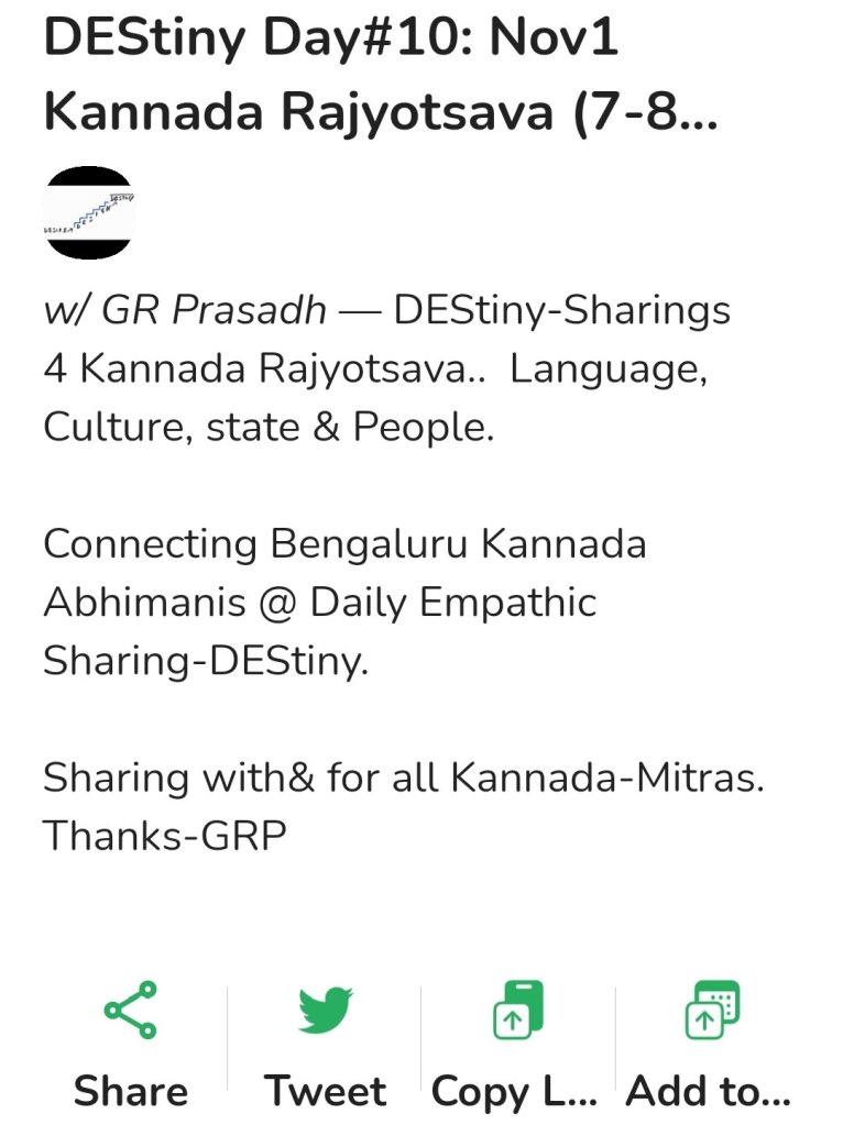 Day10(1/11/21):6 Members joined DEStiny-GrpDiscusses for Kannada Rajyotsava.. Celebrating Kannada Language, Culture, state, People & values.