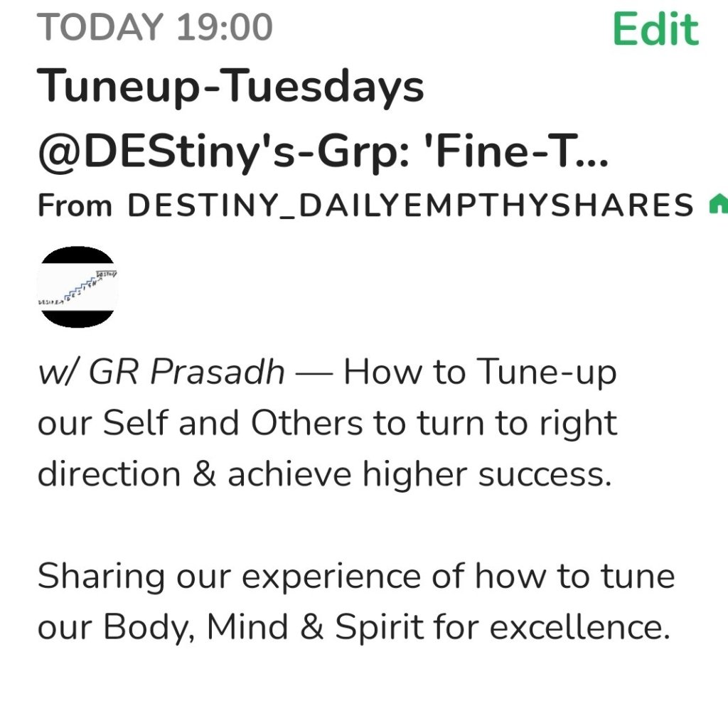 *Project DEStiny-Club*- ‘Daily Evenings Sharing Hour @7′-8Pm(IST) 4EoE-Groups. eSpace Dedicated to the Collective-Desires i.e the Zeitgeist which create our Connected-Destinies.