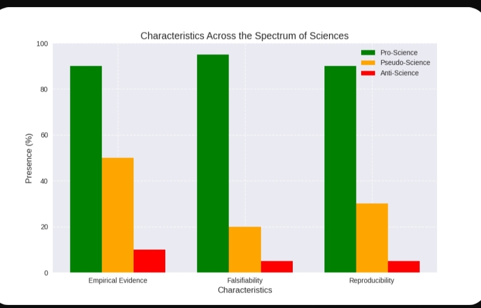 The spectrum of sciences can be conceptualized as a continuum ranging from Pro-Science, which is grounded in rigorous empirical methods, to Pseudo-Science, which mimics scientific approaches but lacks objectivity, to Anti-Science, which outright rejects scientific principles. Below is a detailed discussion of this spectrum, including definitions, characteristics, examples, and visual representations to illustrate the distinctions.