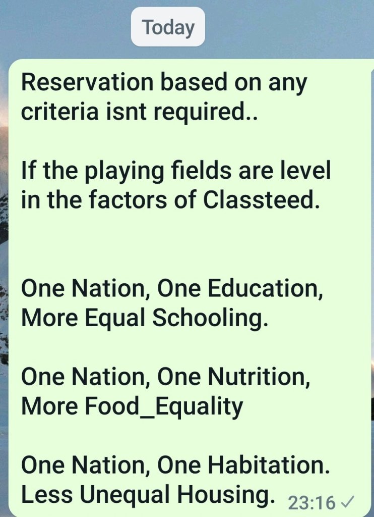 Concepts of A.Reservation Vs B. Affirmative Actions: “Power-Accumulation” by Reservations in education and employment is not new its start can be traced to 2,000 years back when access to places, education and employments were provided exclusively biased for a rule-making(ruling) elite sections(10-20%) and restricted to all others ruled-sectionss groups(80-100%). Its Prehistoric-prehistoric roots from IVC(India Valley civilization(more Egalitarian-democratic) No Palaces found, Vedic(Non-aryans)/Islamic(Non_Arabic Kafirs)/Abrahamic(Non-Jews)/Empire-ic (non-Europeans/non-white) Reservation systems traceable in places of 1.Worship (Religions), 2.Warships (Politics), 3.Ware-shops (Buisness), 4.Workshops (Academics & Industry), 5.Water_Strips (Community Controlled Ponds, Lakes..etc) & covertly access to 6. Whore’s-hips (Controlling Copulations in Population eg. SexSlaves-Trafficking, Harems of the women from the deprived/ruled by Dominant Clasteed groups (Harmful_Harems & Johar of Rani Padmini of Mewar), Killing Love & Lovers, Caste-Based Marriages, Endogamy, Devadasi System 70,000+ caste based sex slaves still in India).