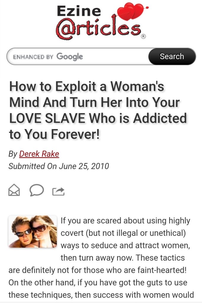 2. In times of high moral/sexual depravity in consumeristic & materialistic society. Ease of access to porn, prostitution & pollution of mind and hearts our young kids, sisters and brothers are getting hooked-addicted by becoming targets of corporates and evils of vested interests. We need to prevent hijackals from taking away and corrupting our dear sisters and brothers lives from good faith, equity & justice. There are Pick up artists and hypnotists who can mind control people to make them their slaves. Dont believe me see this link. I find it highly unethical and Toxic but seen it been used against some sister who lost her mind and went into depression & suicide. This is why I want to alert all Sisters to be aware of these threats to you & our families.