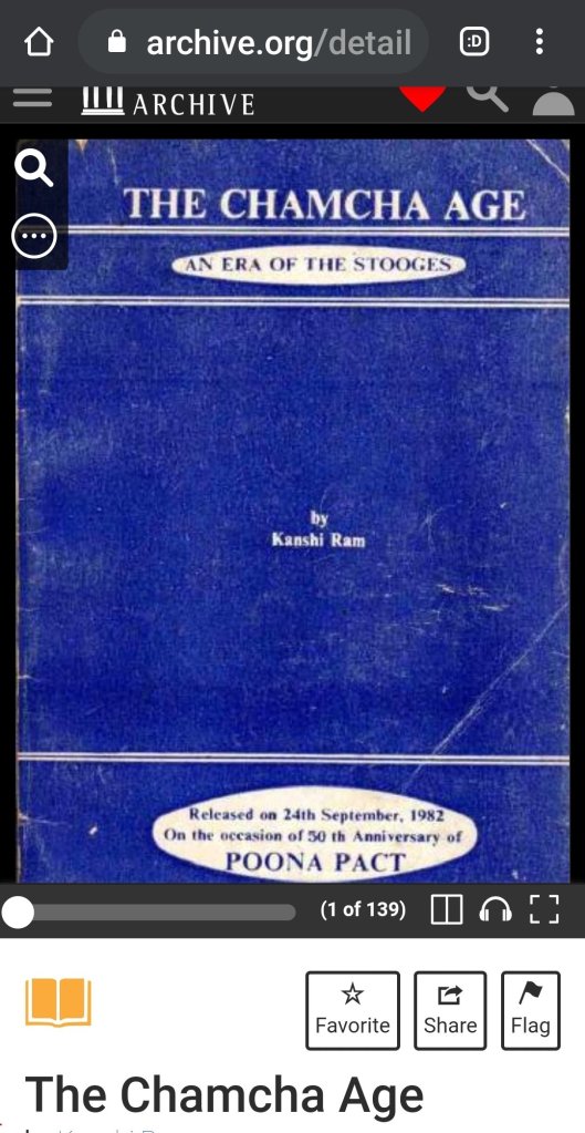 The below book is Exposing the Psychophancy or Cults of personality of India… Right from Ancient period to the current Modern Political-parties.. the Chamcha-Age continues.. written by a Non-Chamcha a Hita-Dharmcha or Menscha Mr.KanshiRam.