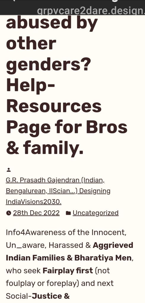 Info4Awareness of the Innocent, Un_aware, Harassed & Aggrieved Indian Families & Bharatiya Men, who seek “Fairplay-first” (not foulplay or foreplay) and next Social-Justice & Community_Welfare.