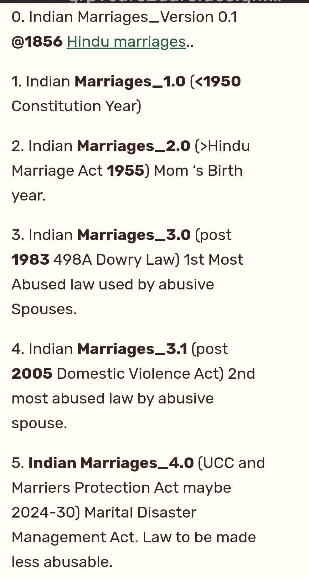 5. Indian Marriages_4.0+ (UCC and Marriers Protection Act maybe 2024-30) Marital Disaster Management Act. Law to be made less abusable.
