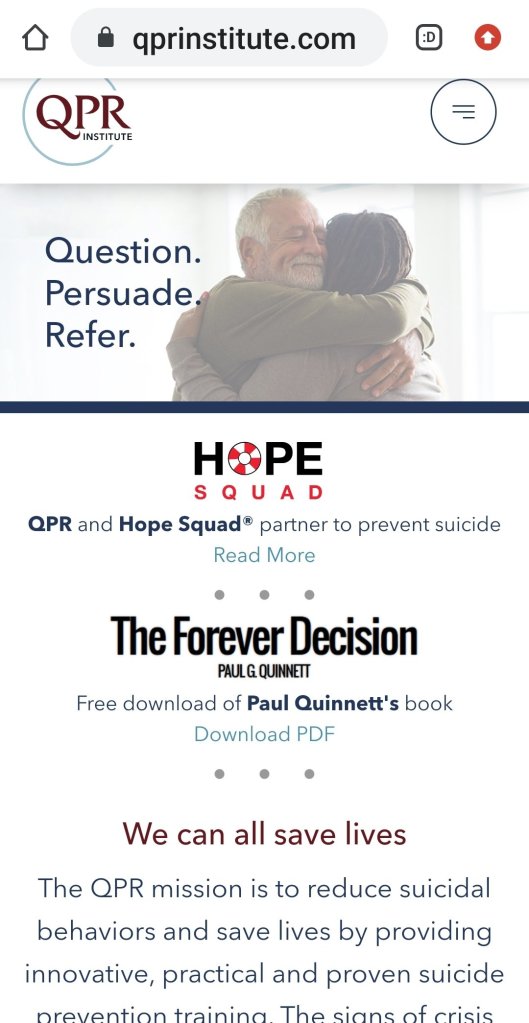 To Prevent Street/Sexual Crimes / QPR: Question, Persuade & Report.