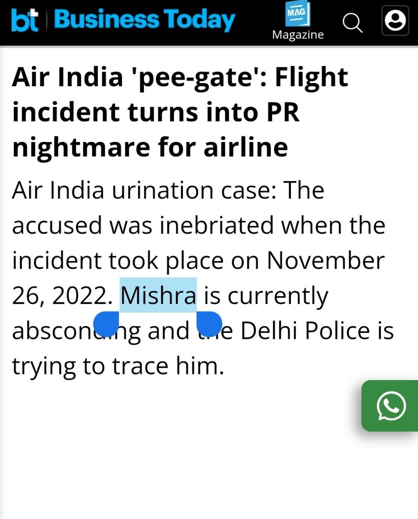 The Game of Shame: https://www.businesstoday.in/industry/aviation/story/air-india-pee-gate-flight-incident-turns-into-pr-nightmare-for-airline-359204-2023-01-06