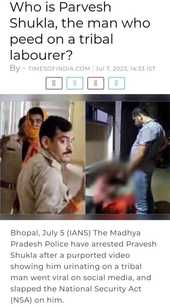 Answer: The secret to the games people play with other beings is in the names they give themselves and their creed. BJP and even other political parties are based on Religio-caste based Supremacism which is what is exhibited in the video of an idealogue standing from a POV of Dominative_Clasteed (Higher economic class, Bhramin_caste and BJP_creed Man) Pissing on a underprivileged and Marginalized_Clasteed(lower economic class, tribal caste, worker creed) man .