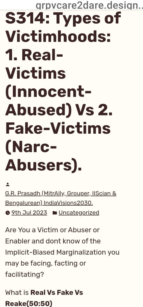 Victims maybe from any section of society it matters who is genuine-overt Victims which maybe in middle grey area and who lies in the fake-covert Victims.