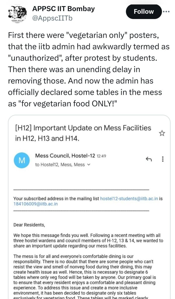 Recent Question of Debate: https://www.timesnownews.com/viral/iit-mandi-director-suggestion-of-landslides-cloudburst-link-to-meat-eating-sparks-debate-video-goes-viral-article-103486277
