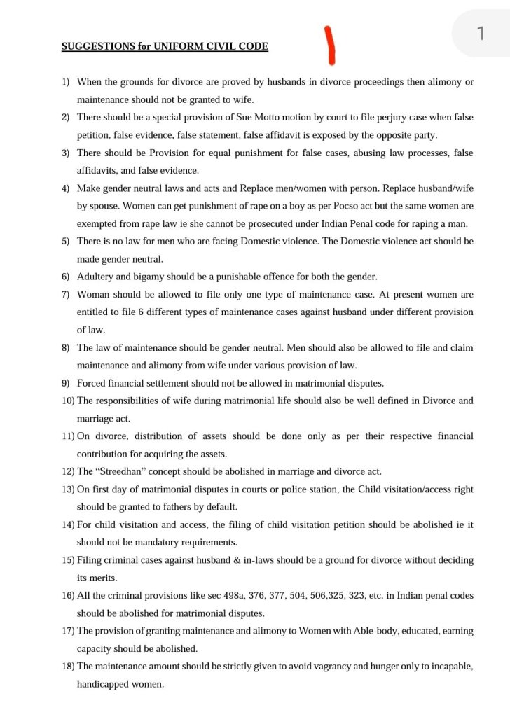 This document is being provided as a collaborative effort of individuals with various points of feedback on proposed Uniform Civil Code.