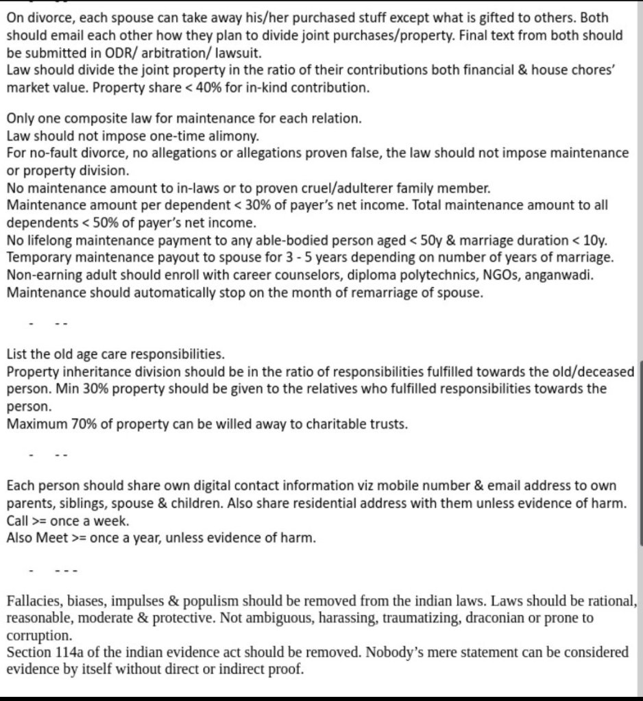 Added: Unify matrimonial litigations, more suggestions to FPC, forms for routine IAs, claim compensation for false allegations, aadhaar for fraud prevention,