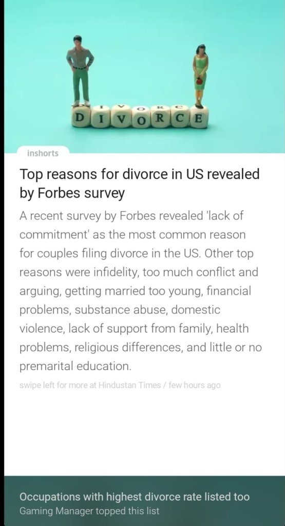 Risks of Breaking India Forces to Break Indian Families: https://psychcentral.com/relationships/top-reasons-for-divorce