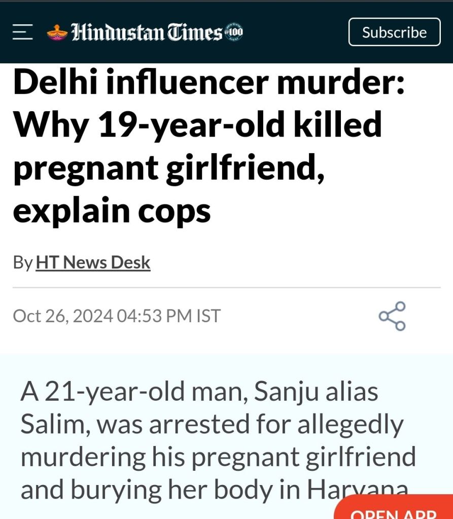 Legally Salim Alias Illegally Sanju: Love-Jihad.. https://www.hindustantimes.com/india-news/why-19-year-old-pregnant-influencer-was-killed-by-boyfriend-in-delhi-cops-explain-101729940181840.html