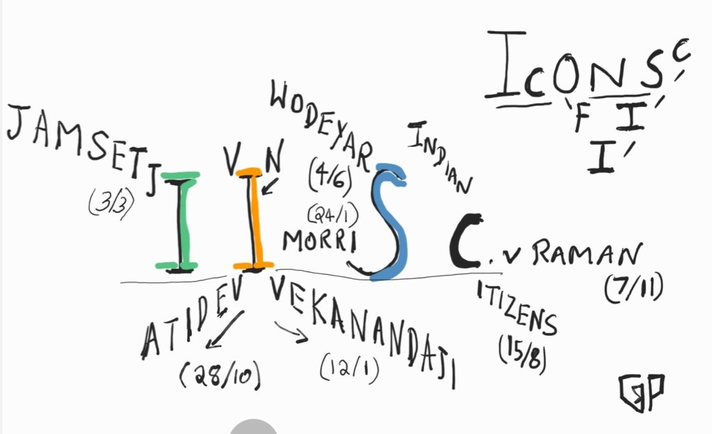 Seven Icons of IISc. Source: https://connect.iisc.ac.in/2019/06/iiscs-first-promoters/