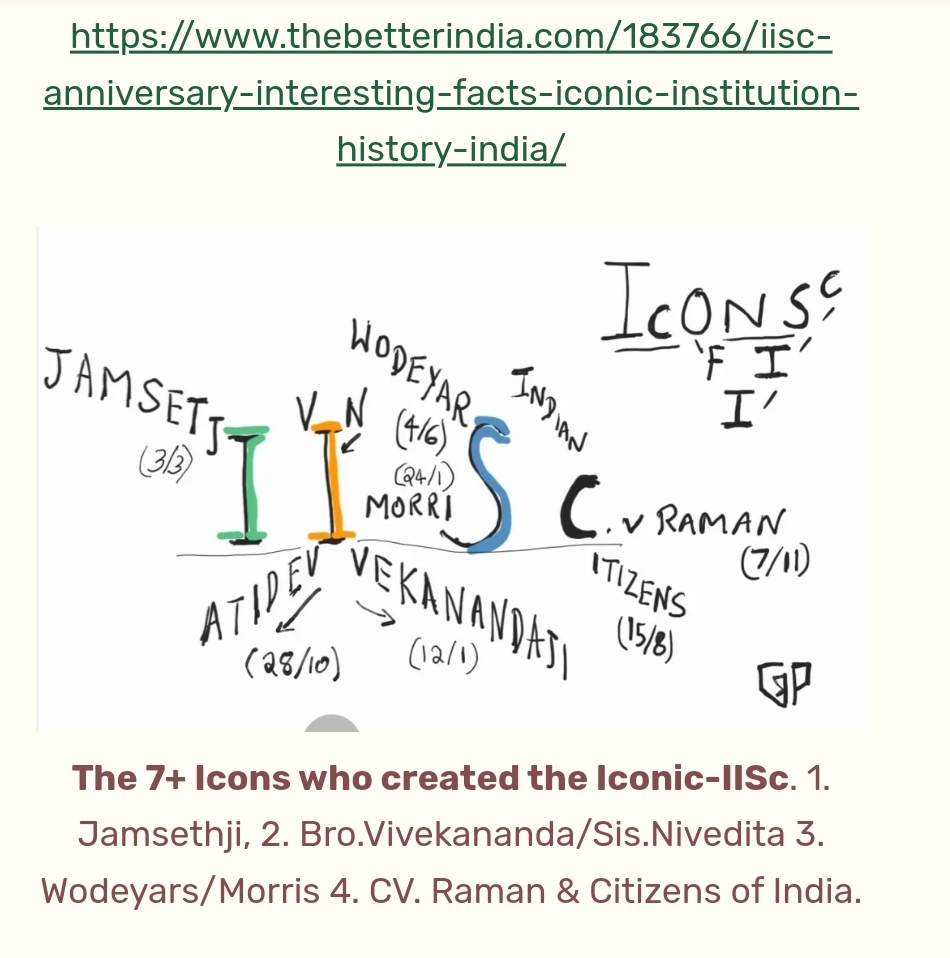 An Alumni’s tribute to my Alma-Mater, Our “Dear IISc“. (Indian Institute of Sciences started in Bengaluru_India in 1909) it was conceived on a ship between 2 great minds & sons of Indian soil.