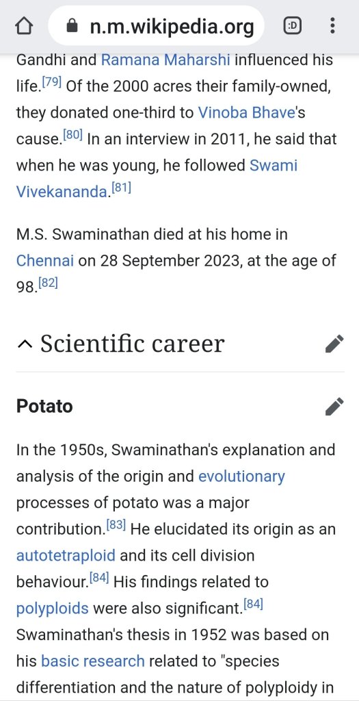 We mourn the loss of a great Indian Scientist. https://www.thehindu.com/sci-tech/agriculture/agricultural-scientist-architect-of-green-revolution-ms-swaminathan-passes-away/article67356103.ece.