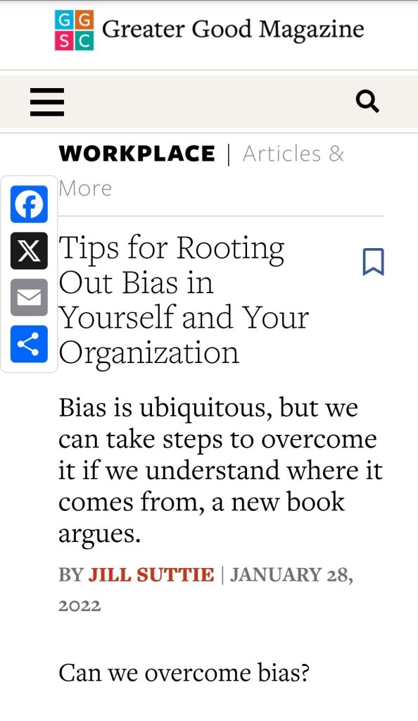 I have tried to de-bias my self to have a healthy mind. Sharing sources to more Scientify our thinking.