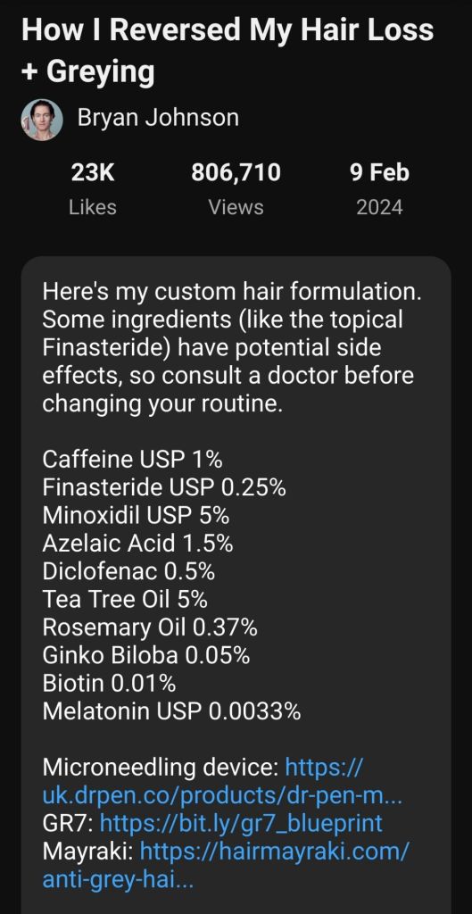 10. Bryan Johnson: Hairfall and greying can be reversed.