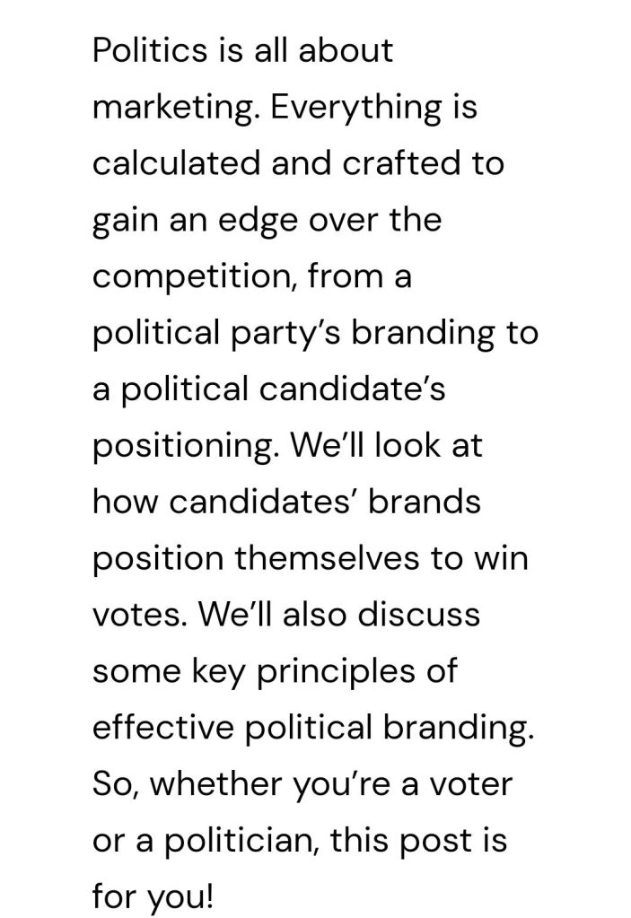 Indian Politics 3.0 was national service current version of politics4.0 is Business.. current politicians are more business men less social servants. let’s Understand politics4.0 https://politicalmarketer.com/political-branding/