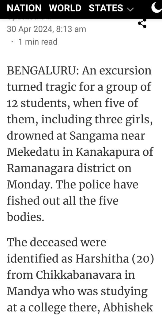 Do YOU know? We can save lives by knowing a technique of flotation that one can learn in 5 mins. I can teach for free in 5mins a life skill to stay alive in water even without swimming coaching.. Who all want2 learn can connect with me in the outs Sports4life group._GRP. #Learn2Float_Prjct/GRP https://www.indiatoday.in/india/story/students-drown-whirlpool-river-cauvery-karnataka-bengaluru-college-dead-police-2533296-2024-04-30