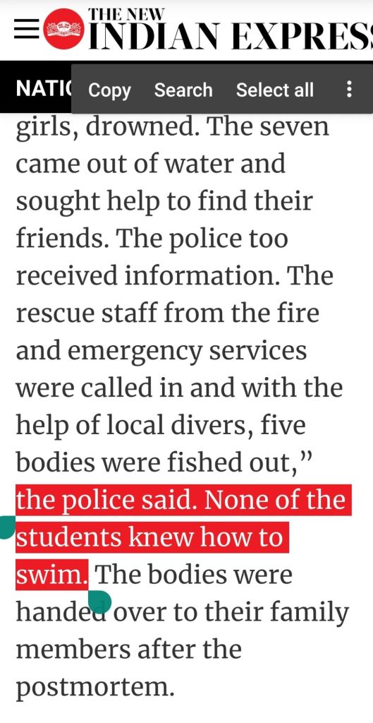 Yesterday’s sad News of Reality in Modern Indian-Education System, Teaches Engineering for 4 years spending 10+ lakhs but we arent taught basic life skills as Swimming i.e 5K.. Why What’s the problem?.