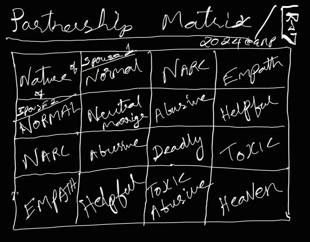 #Marital-Martix Based on Spousal-Character (Narc-Norm-Empath) Spectrum.