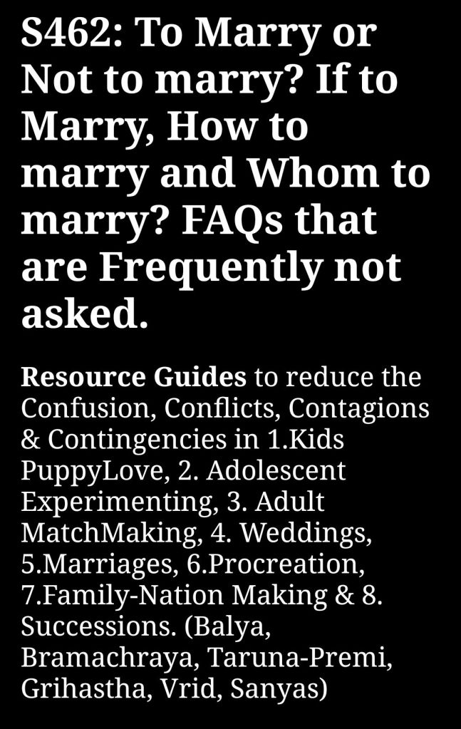 To prove the hiddenfluences (that few see) and provide reasonable remedies (that many need) is the Intent. Why I am writing this seminal page on Ancient need of Maritology or Marital-Sciences (Kalyana-Vigyana). Indian Universities focus is on exploiting human resource for MONEY-Making that’s why Commerce, MBA, Technology and Medicine are more favored in Edu-system. where as Harmony-Making Courses of Home-Sciences, Psychology, Maritology are ignored and neglected and have few developed faculties or departments.