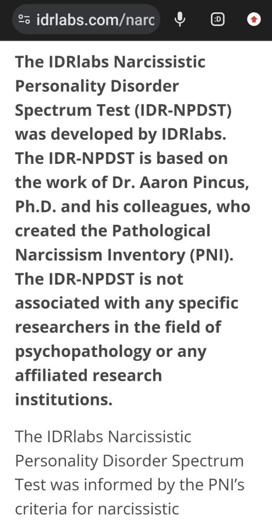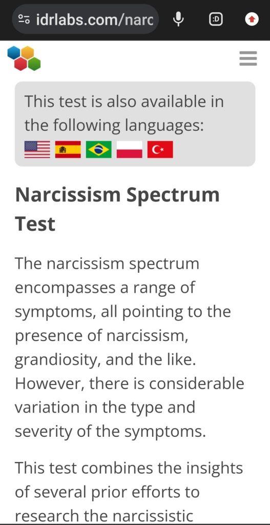 source of scientific method: 1. https://www.idrlabs.com/narcissism-spectrum/test.php