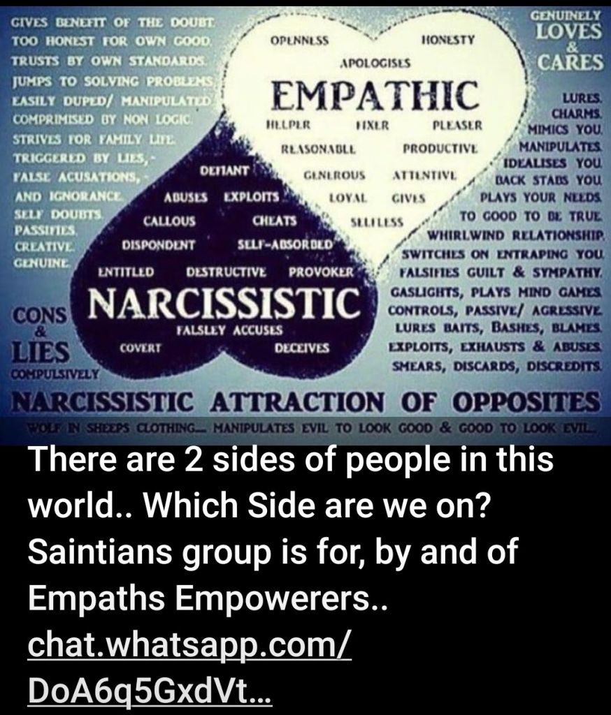 Similarly the Individual & group with level of Conscience & EmpathiCompassion are termed as Empaths while Narcs are Deficient in Humanity.