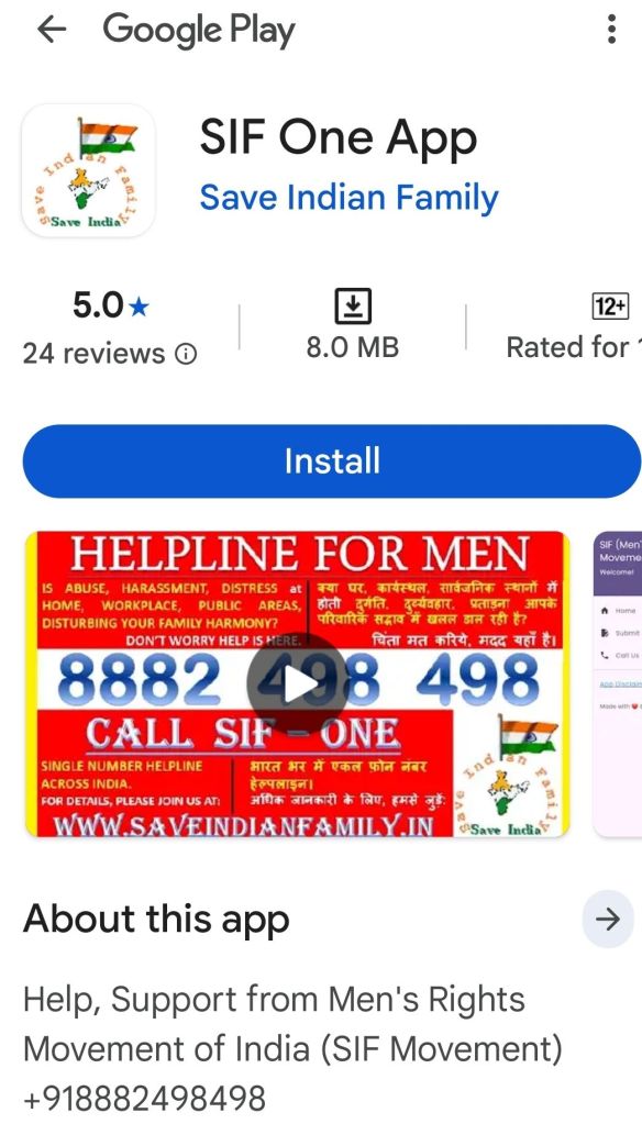 1. All-India Mens Helpline (08882498498) by SIF or App (SIF-One)