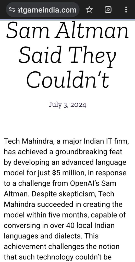 Do read of Achievement here.. https://greatgameindia.com/project-indus-how-india-built-an-ai-model-sam-altman-said-they-couldnt/