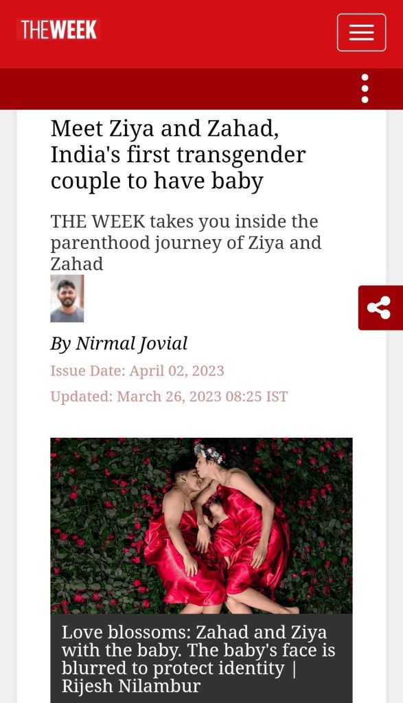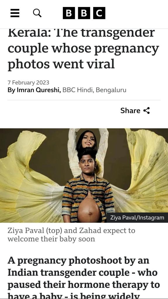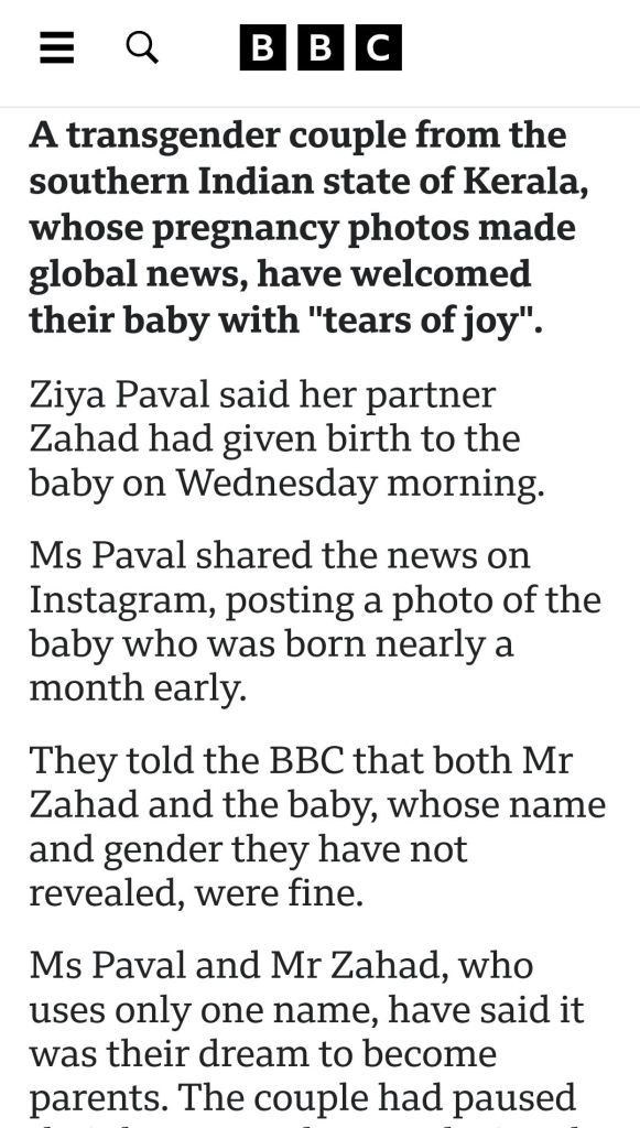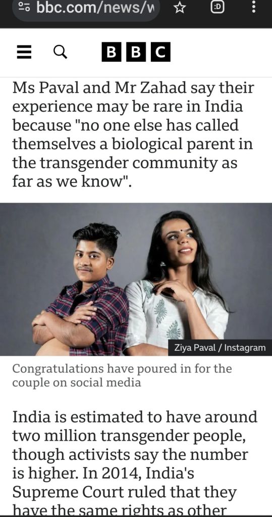 Read this post to understand better Genderity and also see how Science can create History not only in space but also in Biology.. Mr.Fahad an accountant became the First Indian-Transman and TransCouple to give birth to a Child.