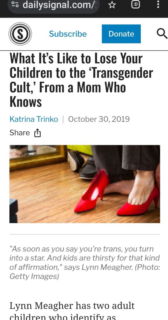 View of a Parent about Transgender-Cult: https://www.dailysignal.com/2019/10/30/what-its-like-to-lose-your-children-to-the-transgender-cult-from-a-mom-who-knows/