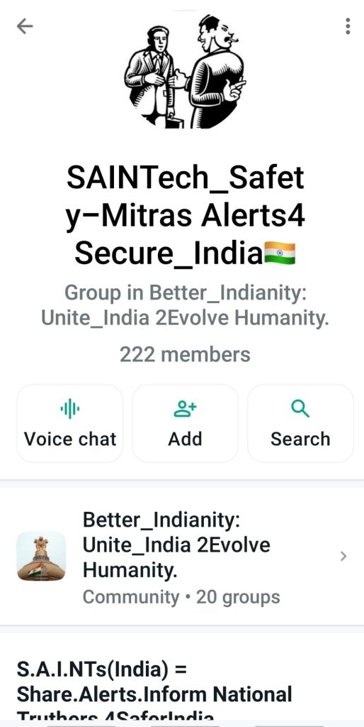 *All-India Public Safety-InfoSharers, Let’s Secure_India by SAINTech_AlertGroups. * Indics_Invited: https://chat.whatsapp.com/DoA6q5GxdVtFCxWgfPCeO4