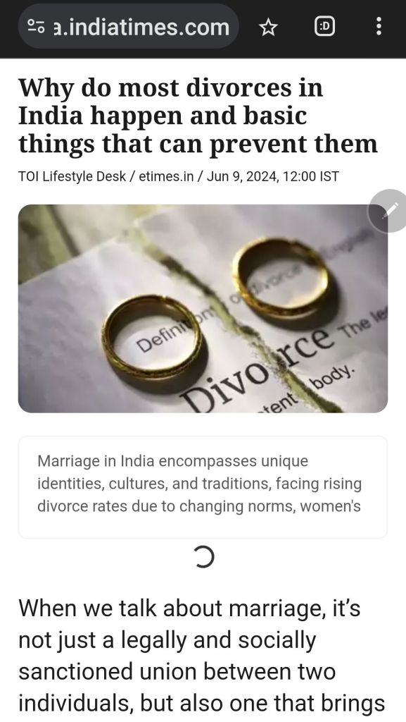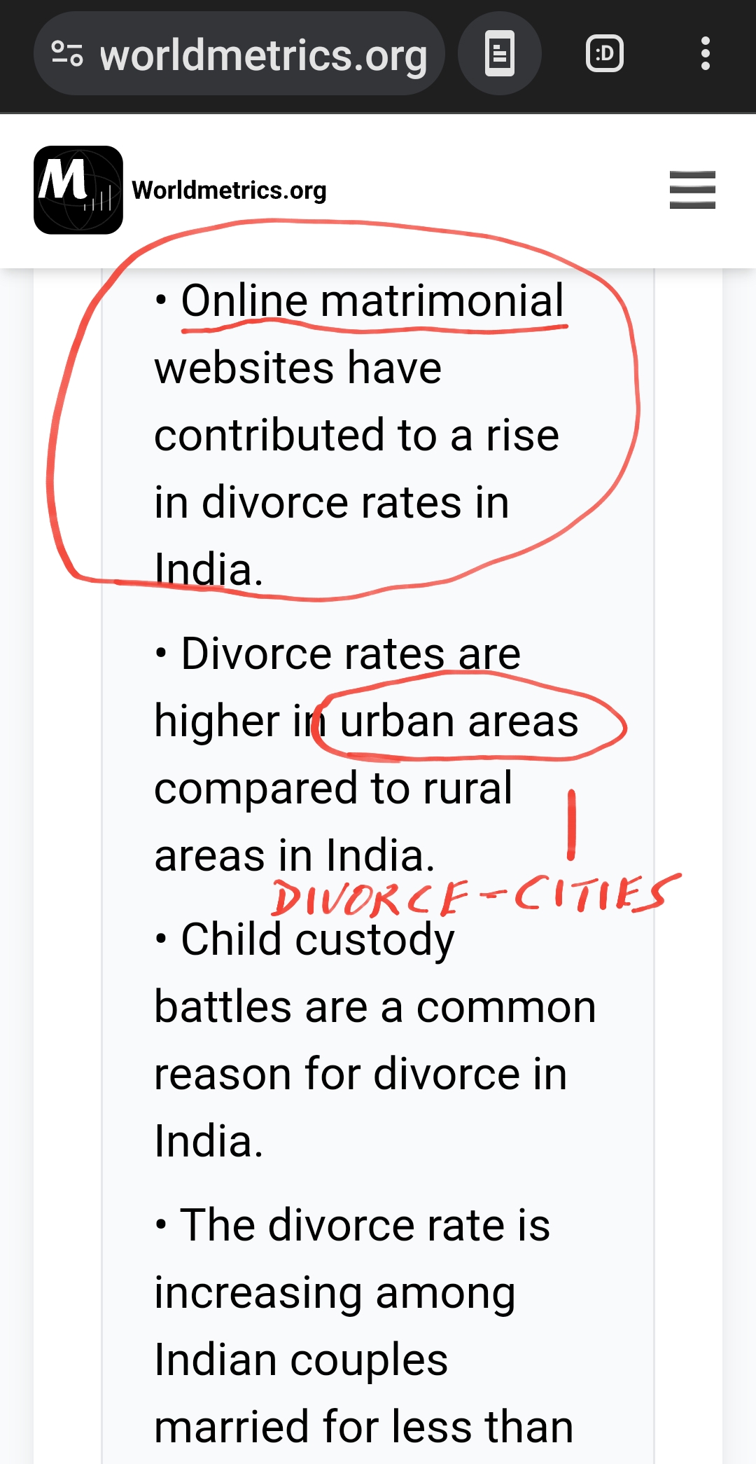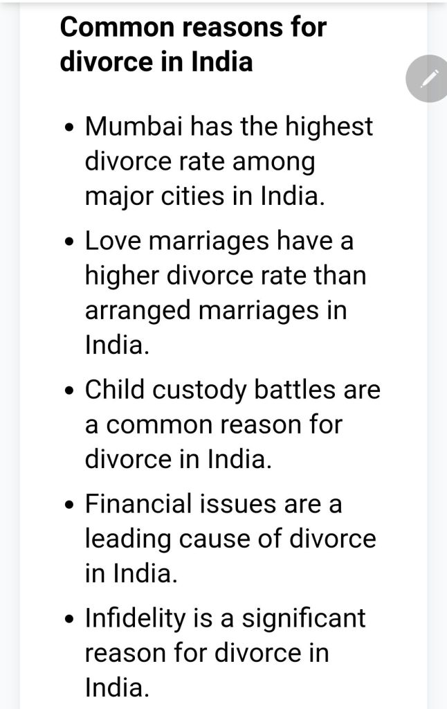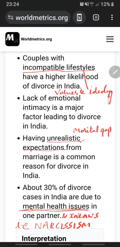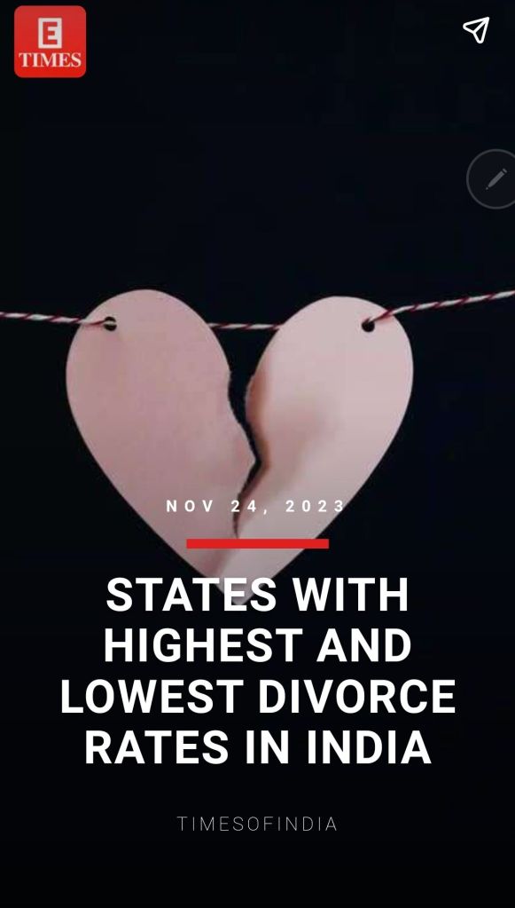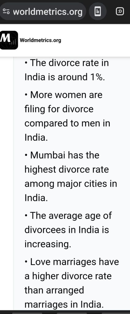 Actual Divorce_Rates in India is high but due to systemic flaws & misuse of laws by narc-inlaws filing Fake cases & overloading the Legal system the divorce and illegal-seperation is under-reported & un-recorded at Census & National Statistics.. If Stats collected correctly it might easily be in top 10 Divorcing-nations(sic). India is Catching up with US and Europe in Divorce Rates(40-50%) too..