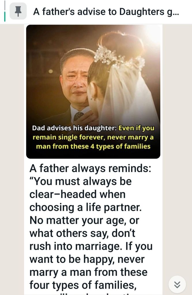 A father always reminds: “You must always be clear-headed when choosing a life partner. No matter your age, or what others say, don’t rush into marriage. If you want to be happy, never marry a man from these four types of families, or you’ll end up hurting yourself.”