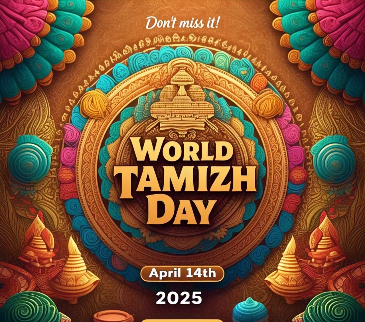Tamizh language and culture are not mere relics of the past but living bridges to a global future. Their literary depth, artistic brilliance, and ethical wisdom offer timeless lessons for humanity. By celebrating April 14 as World Tamizh Day, we honor a heritage that unites millions while inviting the world to share in its beauty and values. Let this day be a clarion call for cultural pride, linguistic diversity, and global harmony—a true Puthandu for all.