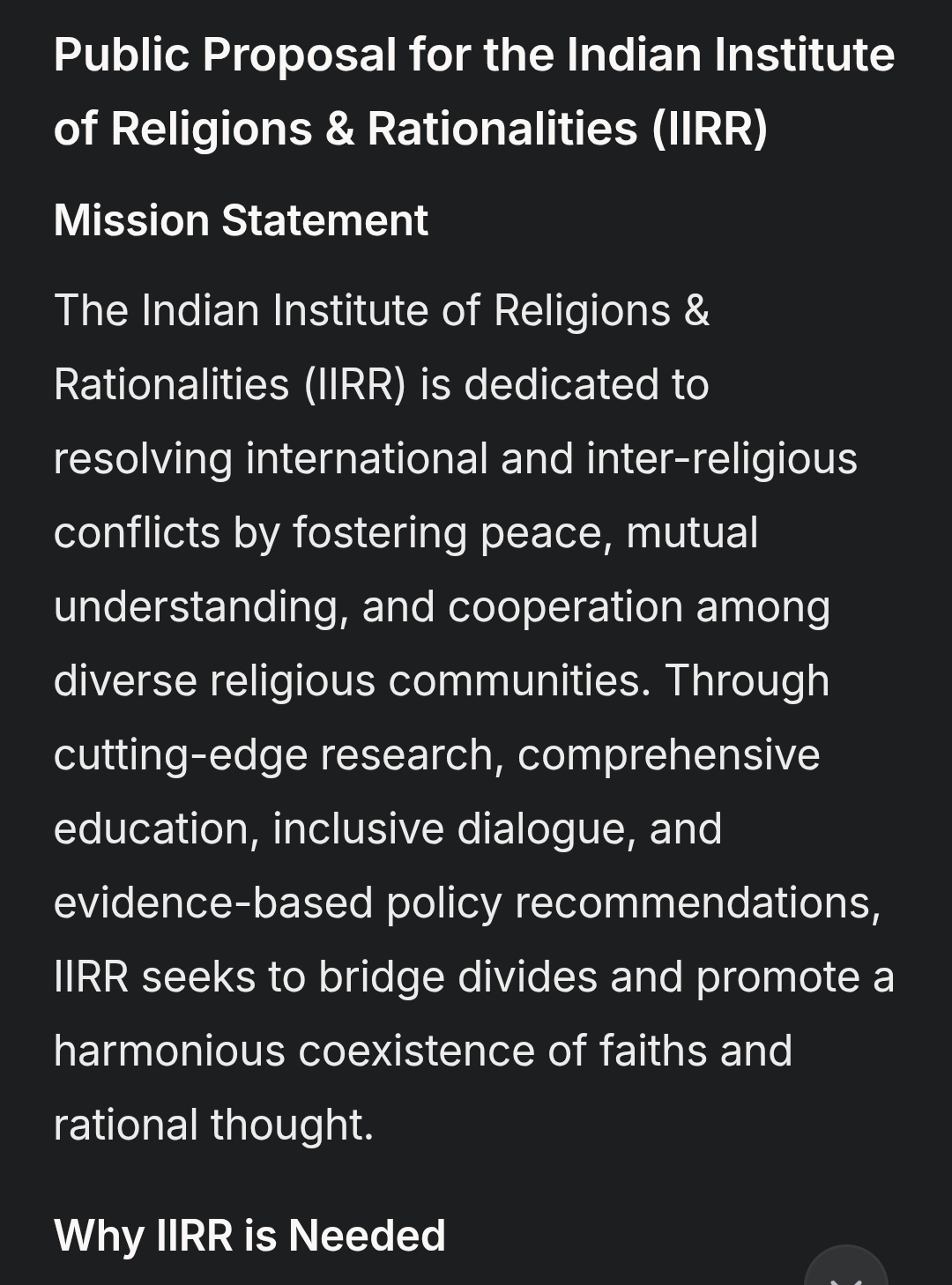 Public Proposal for the Indian Institute of Religions & Rationalities (IIRR)