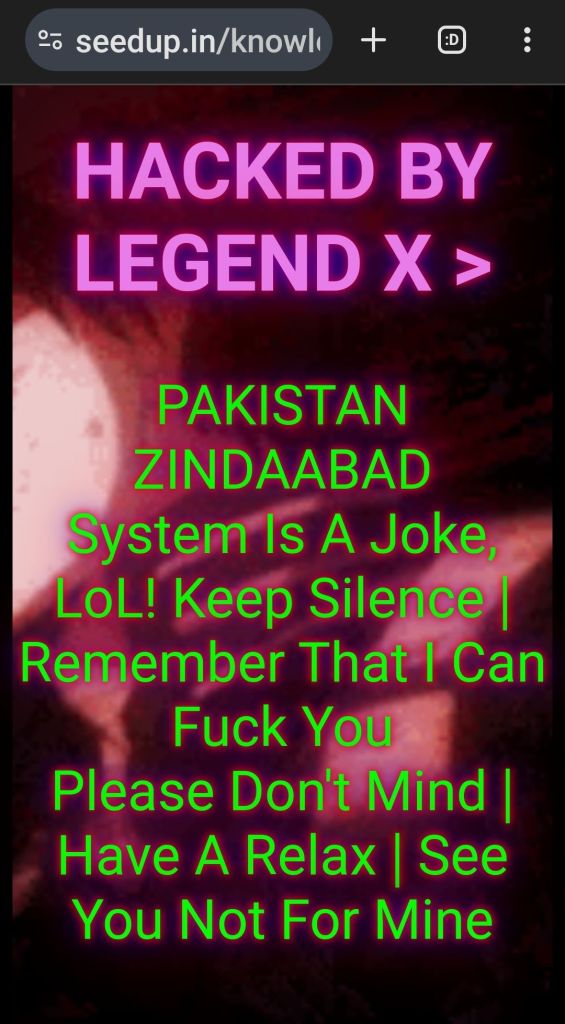 Proof Below: Indian Website hacked by Pakistani Cyber Jihadis in 2024 .. https://www.seedup.in/