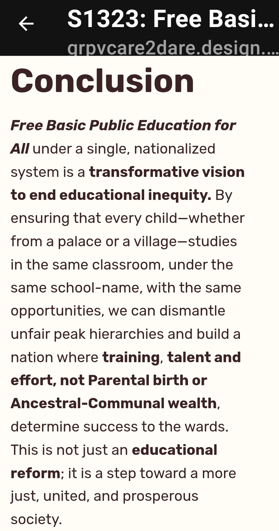 S1323: Free Basic Public Education for All. GRP-Grok.