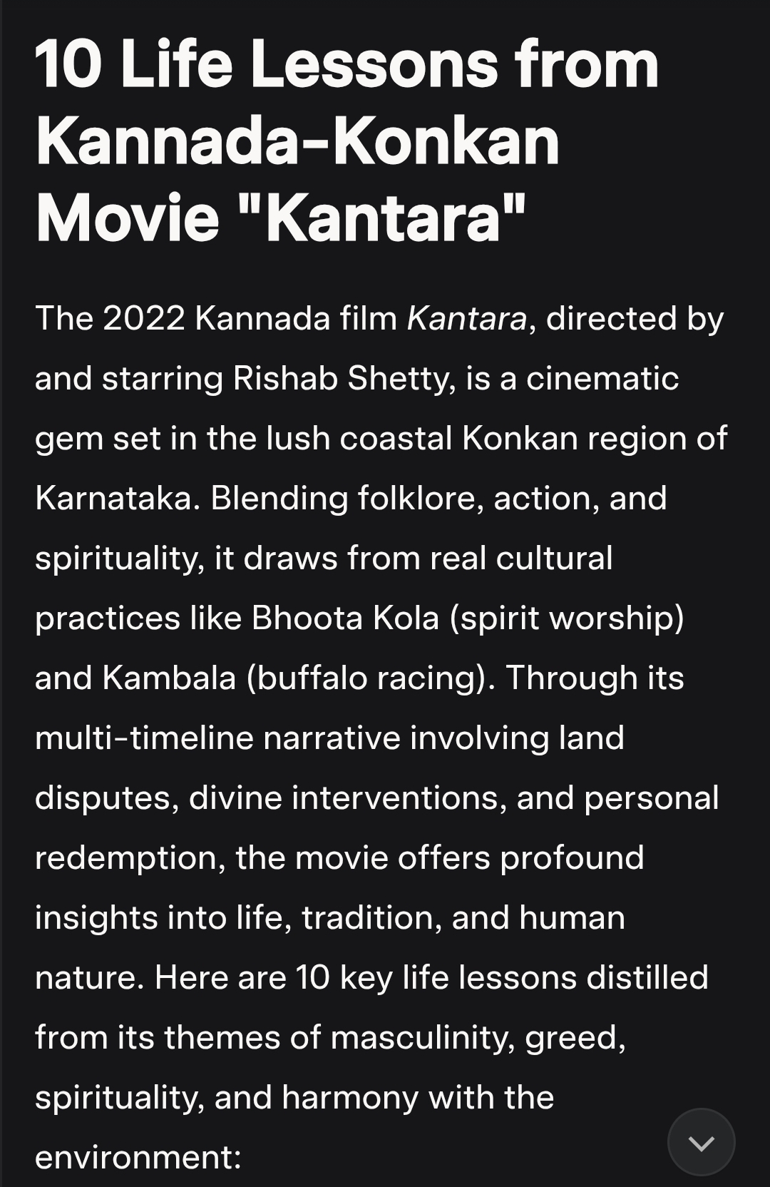 10 Life Lessons from Kannada-Konkan Movie “Kantara” The 2022 Kannada film Kantara, directed by and starring Rishab Shetty, is a cinematic gem set in the lush coastal Konkan region of Karnataka. Blending folklore, action, and spirituality, it draws from real cultural practices like Bhoota Kola (spirit worship) and Kambala (buffalo racing). Through its multi-timeline narrativeContinue reading “S1324: 10 Life Lessons in Kantara Movie.”