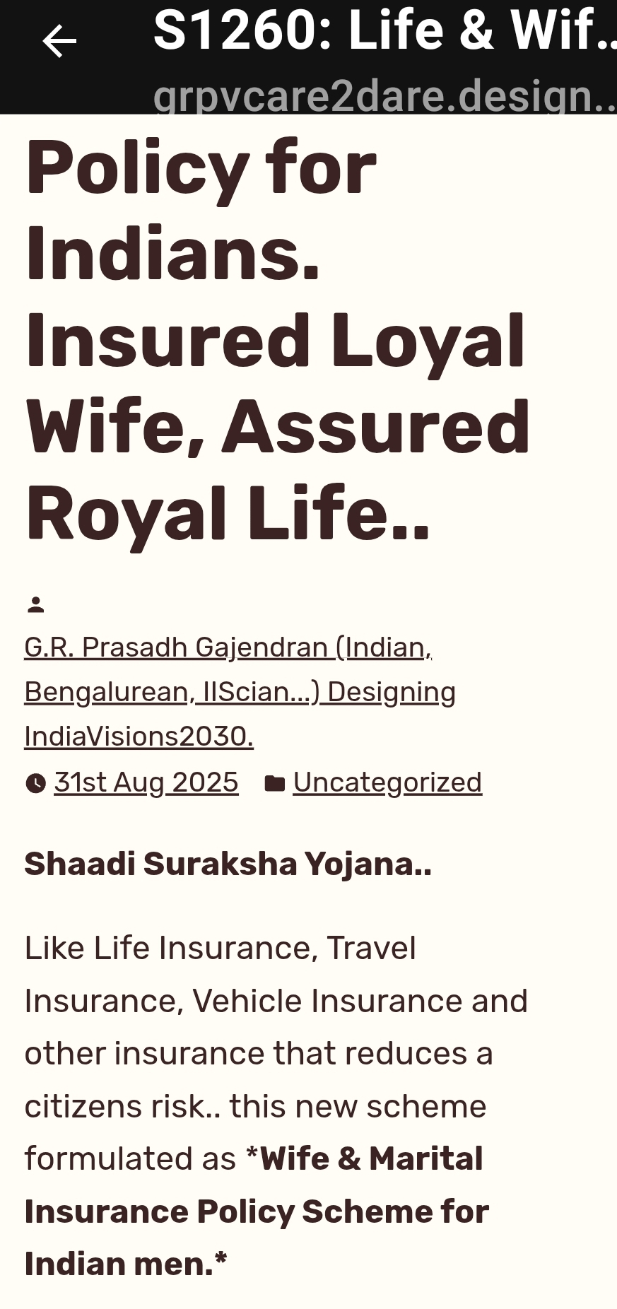Shaadi Suraksha Yojana 2025.. Like Life Insurance, Travel Insurance, Vehicle Insurance and other insurance that reduces a citizens risk.. this new scheme formulated as *Wife & Marital Insurance Policy Scheme for Indian men.* Most important insurance is not health or wealth insurance, its Marriage Insurance. This product will insure your marriage is free of risksContinue reading “S1260: Life & Wife Insurance Policy for Indians. Insured Loyal Wife, Assured Royal Life..”