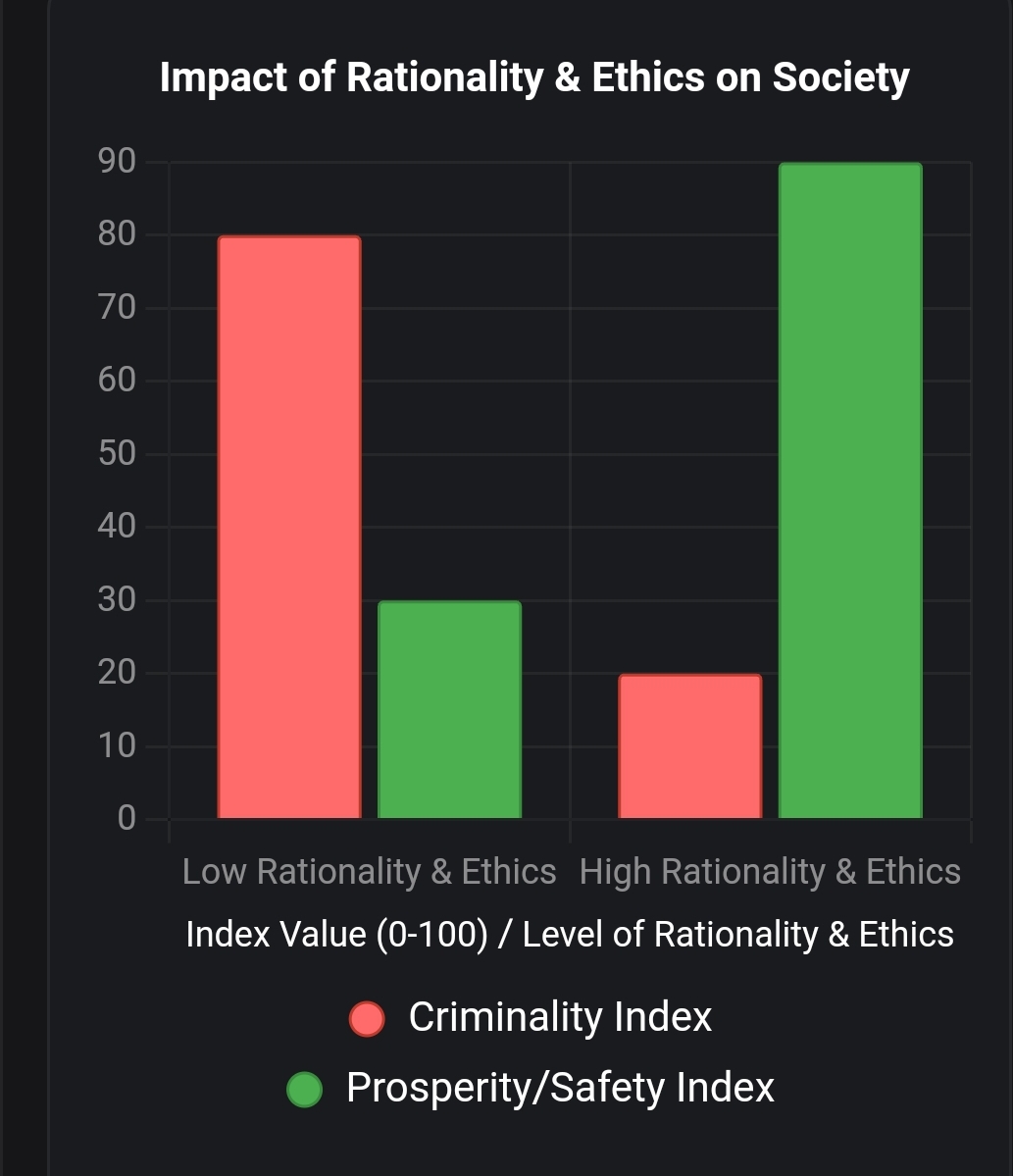 Our Inquiry across ideologies suggests a relationship between rationality, ethics, criminality, and societal outcomes. Let’s break it down: The vice versa suggests a spectrum: as rationality and ethics increase, criminality and irrational behavior decrease, and vice versa. Improving rationality and ethics in individuals and peer groups is a multifaceted process that involves cultivating critical thinking,Continue reading “S1158: Rationality +Ethics = ? (R+E = S+P ect..) by GrPok.AI”