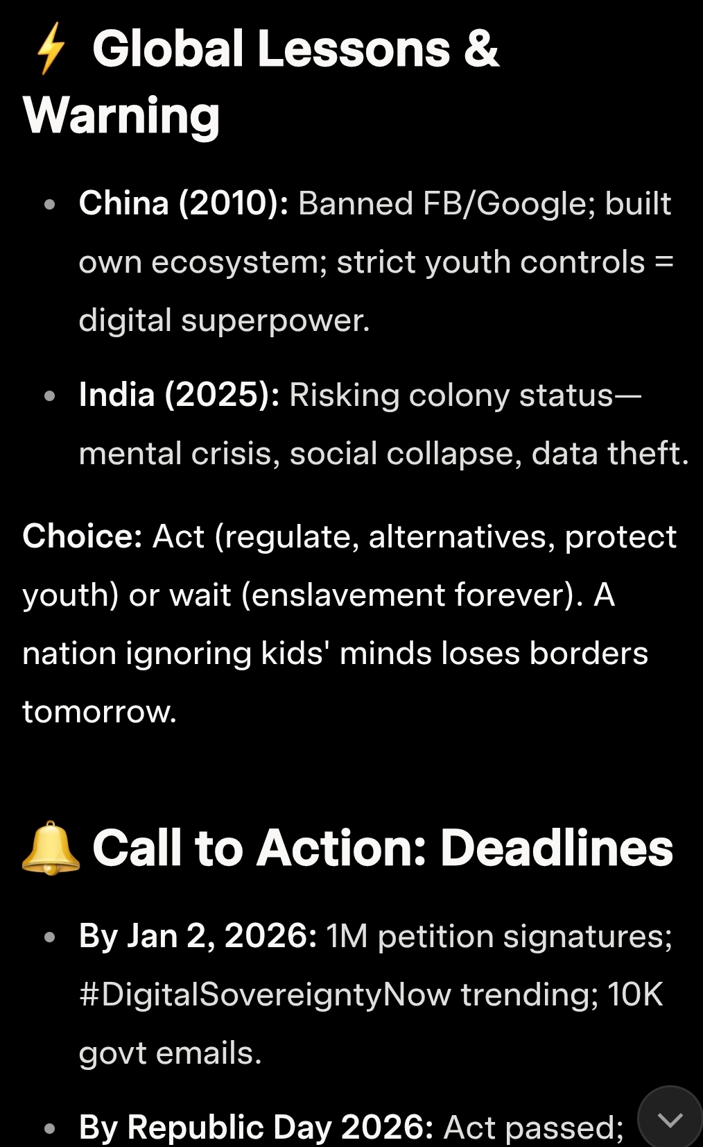 Become a MAN: Moral, Adaptive & Nationalistic Dear Indians, In a world of digital threats, it’s time to rise as a MAN—Moral (upholding ethics and family values), Adaptive (learning and building resilient alternatives), and Nationalistic (protecting India’s sovereignty). This manifesto, “Save India from Digital Colonization,” calls for urgent action against economic loot, mental slavery, andContinue reading “S1458: #Digital_Freedom Fight for Free India from Cyber Slavery.”
