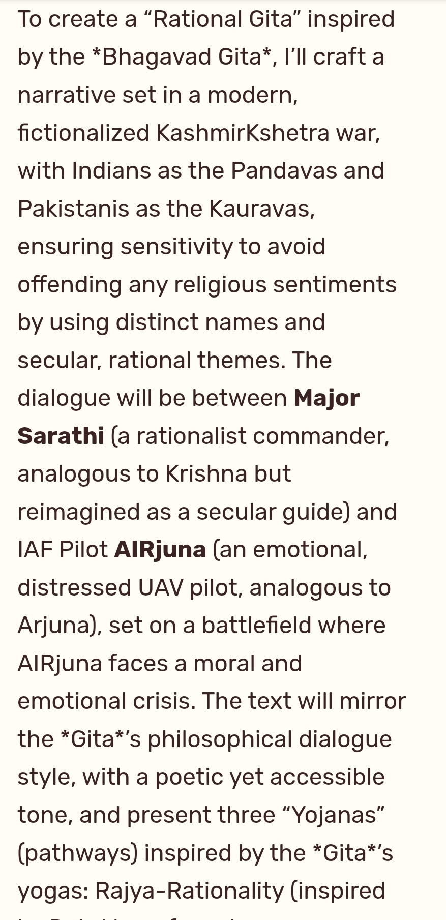 An Eternal War between Rationality & Irrationality. Replayed in 2025 Indo-Neighbhour War. To create a “Rational Gita” inspired by the *Bhagavad Gita*, I’ll craft a narrative set in a modern, fictionalized KashmirKshetra war, with Indians as the Pandavas and Neighbhours as the Kauravas, ensuring sensitivity to avoid offending any religious sentiments by using distinct namesContinue reading “S992: Rational Gita by Grok.”