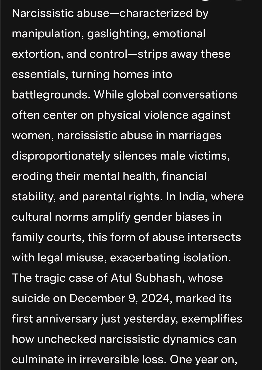S1440: Human Rights Day 2025: Deep Analysis of Narc Abuse in Marriages & Relationships. Highlighting Athul Subhash Case..