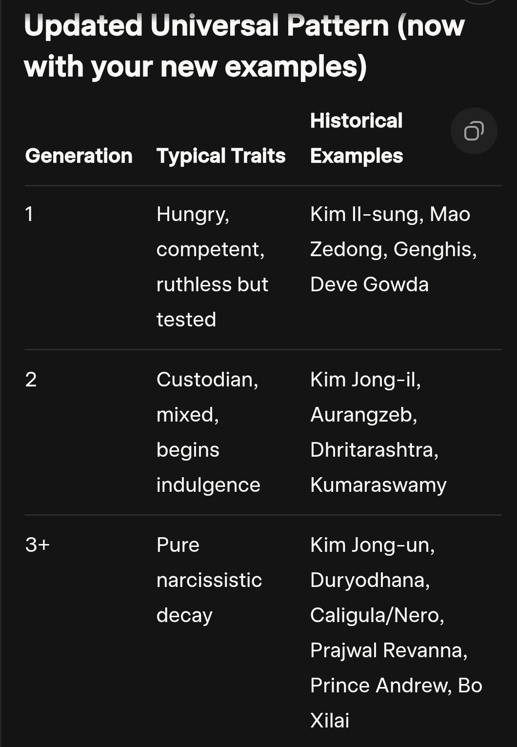 A.I Analysed Report of Latest Indian Politics.. Narcissism, when entrenched in family systems built on Religionism, Politicism, Casteism or Clanism, tends to amplify across generations in environments of unchecked power, wealth, and privilege. It combines with entitlement, lack of accountability, and intergenerational transmission of trauma or grandiosity. Below is a structured analysis with the historicalContinue reading “S1413: Narcissism, Nepotism & Necropolitics… Devolution of Families in Politics..”