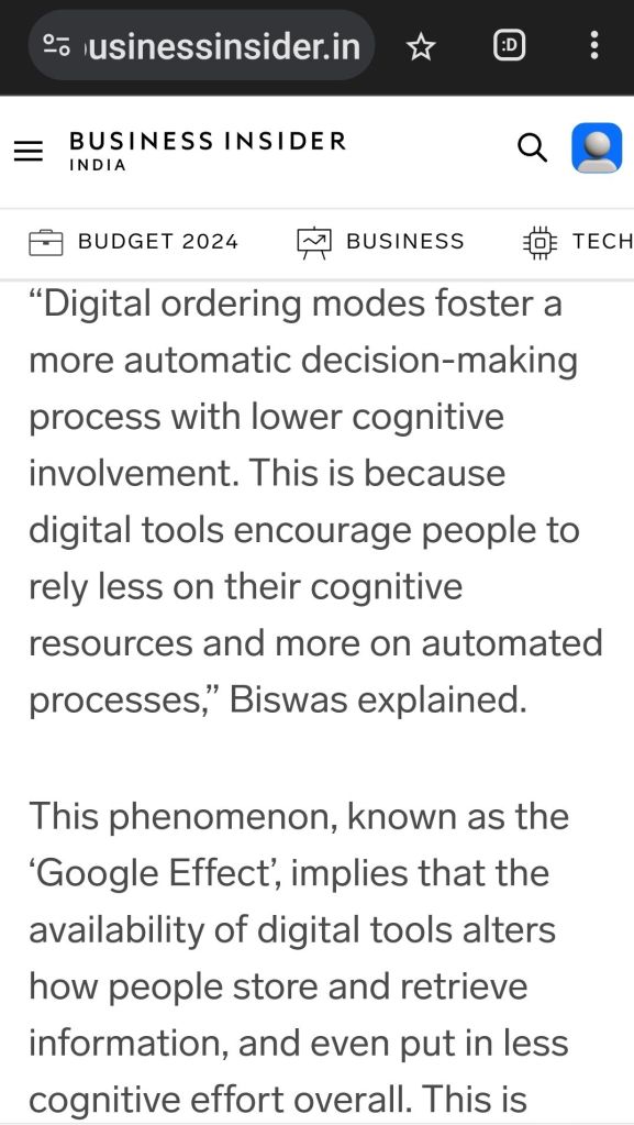 Right now the Google effect is not only reducing our cognitive-abilities but also collective-abilities, our need for valuing friendship, workmanship and Spouseship.