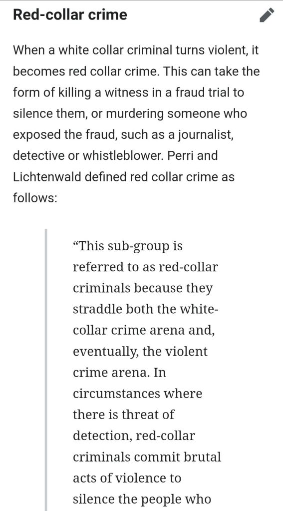 recent Example is Trump Assassination attempt in Jul-2024 is a Black Collar Crime..